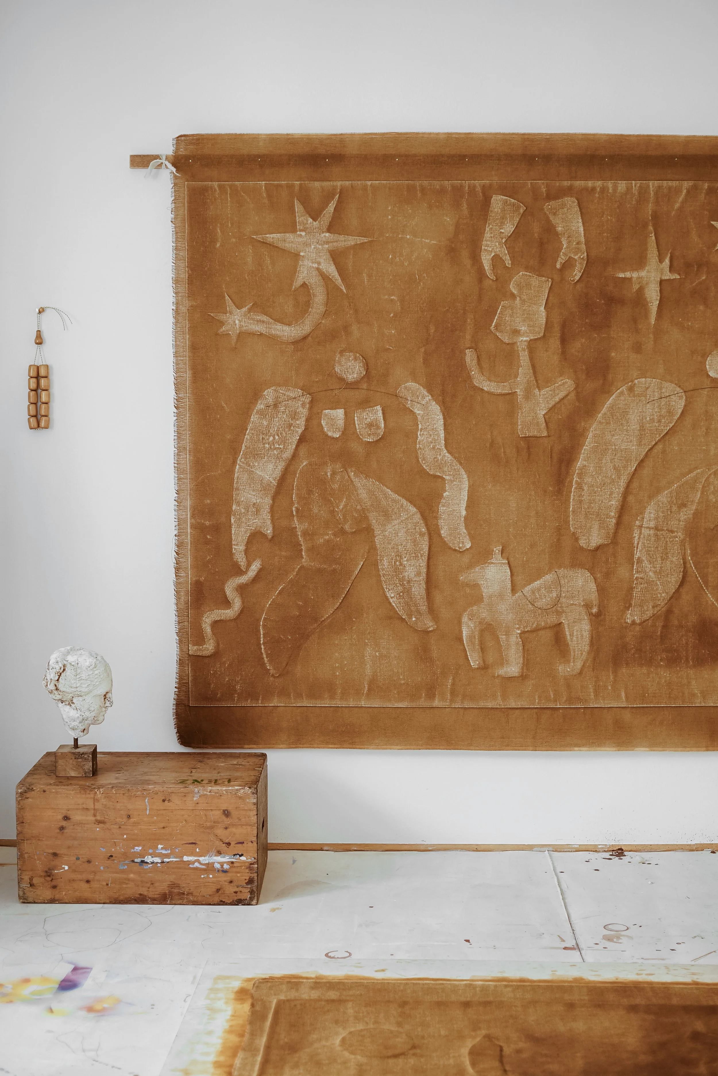 Santa Gaïa Pilens est une artiste symboliste et multimédia basée à Vienne, dont le travail couvre la scénographie, la photographie et l’art inspiré du folklore. S’inspirant du patrimoine culturel et de la mémoire collective, elle explore des thématiques universelles. Ses fresques textiles, réalisées selon une technique de « momies contemporaines » utilisant laque et lin brut, traduisent la tension entre le visible et le caché.